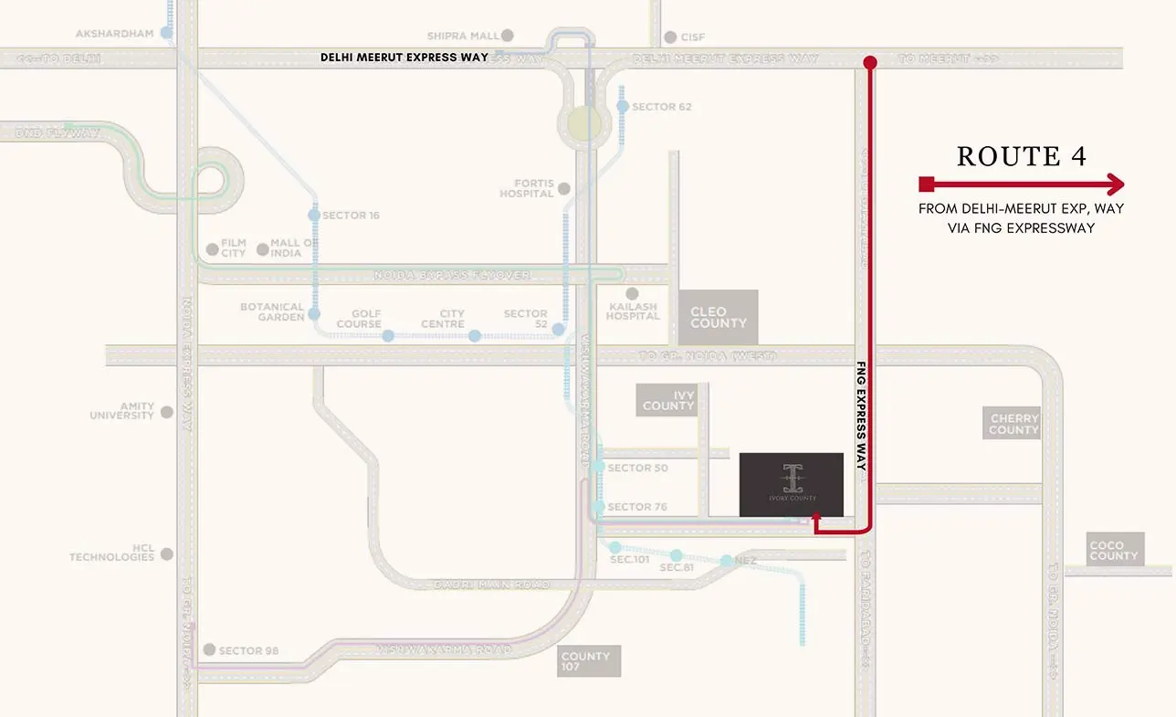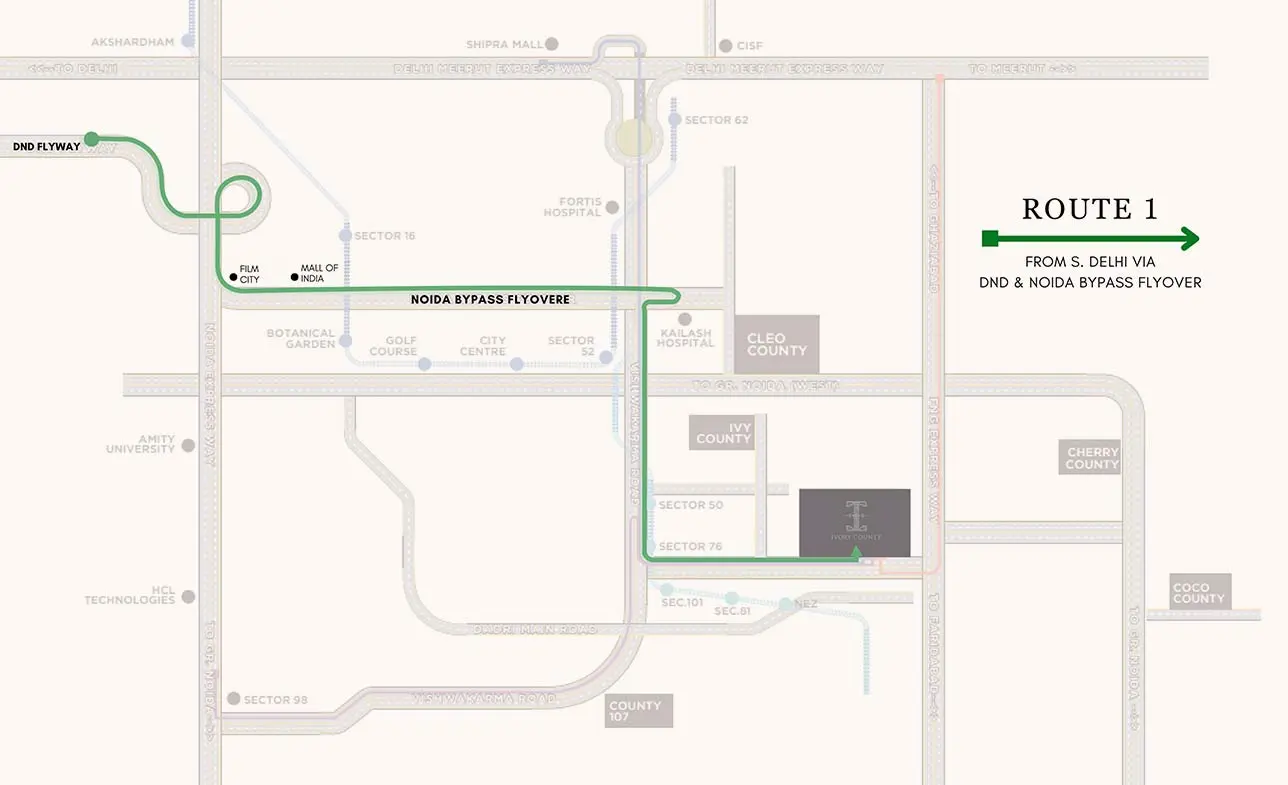 Located in the strategic heart of Noida, Ivory County offers zero-commute convenience to major business hubs, expressways, and essential city infrastructure.